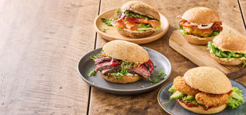 I vores sønderjyske håndværksbageri, har vores bagere udviklet en Øko Surdejsburgerbolle og en Koldhævet Speltburgerbolle med fokus på smag og kvalitet. Vi har forsøgt at kombinere vores bagerverden med kokkeverdenen, og tænkt et skridt videre i forhold til anvendelsen af vores brød. Vi vil gøre det nemt for de professionelle køkkener, og derfor er begge burgerboller forskåret og fungerer som Tø & Servér.